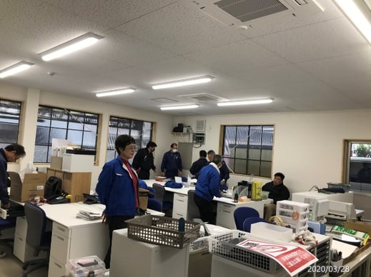 机やロッカーが組み立て上がったころで、社員総出で書類や各自の持ち物を搬入します。